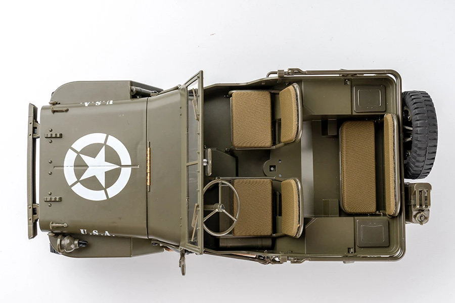 - Realistic scale detailing including canvas seats, rear-view mirrors, dashboards, leaf springs & dampers, tires and metal ladder frame rails