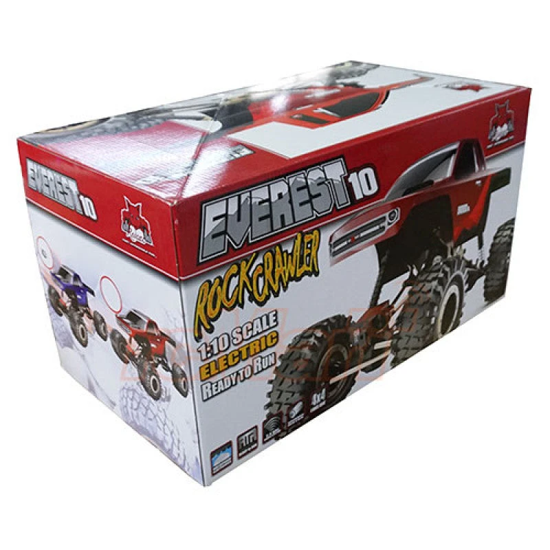 The Redcat Racing Everest-10 1/10 Scale 4WD RTR Electric Rock Crawler, is ready for rock crunching, boulder stomping, stone slamming adventure! The Everest-10 comes complete with front & rear multi-link suspension, front and rear transmission, 2.4Ghz Radio Control, Battery & Charger! Aggressive bead-lock rock crawling tires, four aluminum capped oil filled shocks, complete ball bearings throughout, and a two channel 2.4GHz Radio all make this 4X4 super crawler more than ready to challenge the laws of gravity!